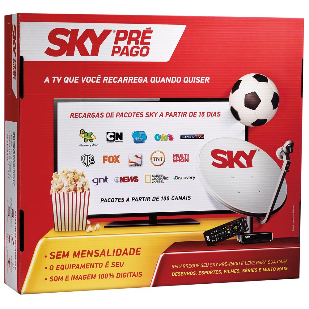 Compre o seu kit com antena, controle e equipamento, escolha a programação que preferir e faça a recarga quanto desejar. Os pacotes disponíveis para o Sky Pré-Pago possuem uma seleção variada de canais, são filmes, séries, desenhos, esporte, notícias, culinária e muito mais. Tudo isso com imagem e som 100% digital. Quando o período da recarga acabar, você pode realizar novas recargas de pacotes SKY quando quiser e puder. O Sky Pré-Pago oferece mais liberdade de escolha em sua programação.